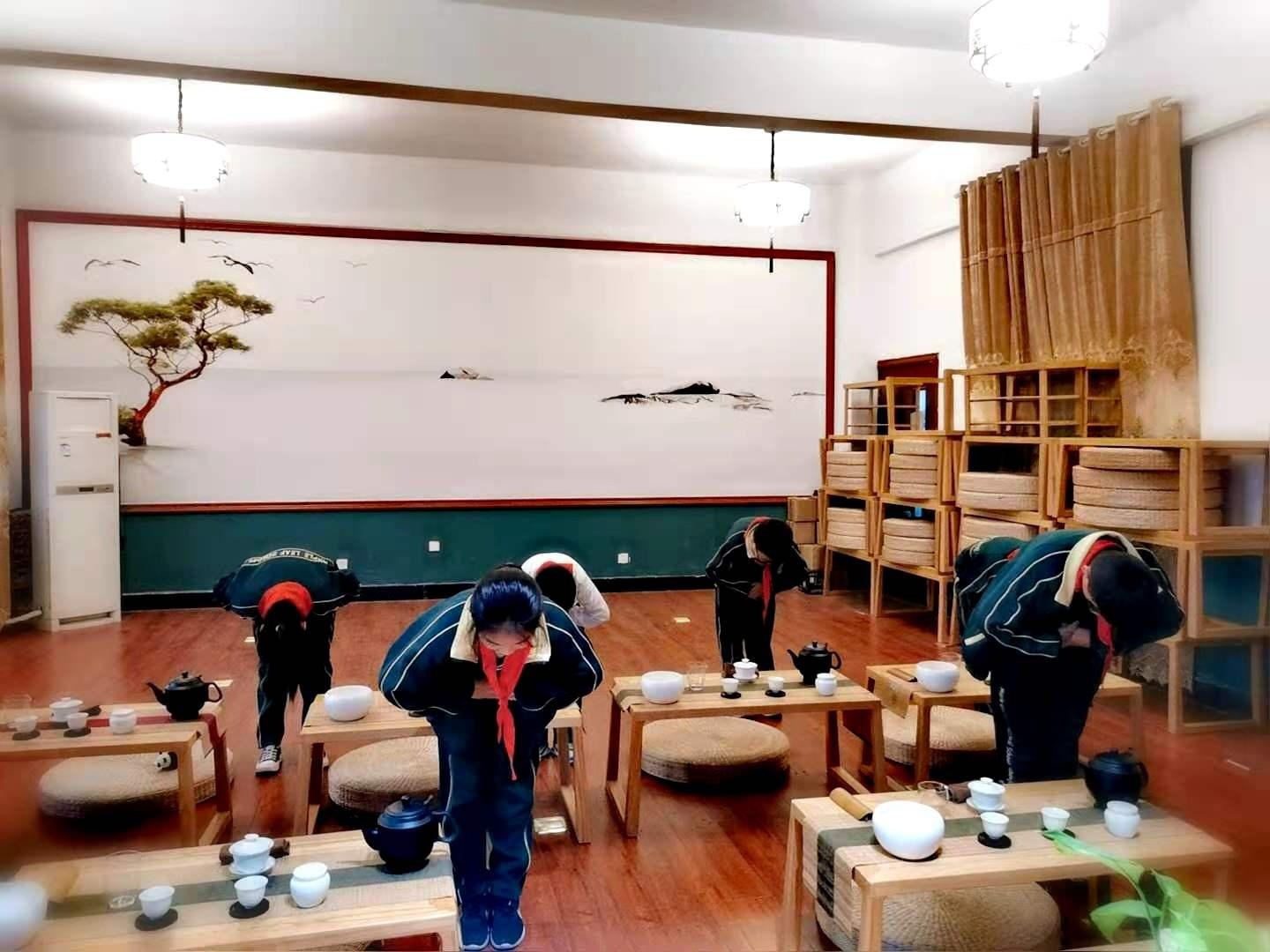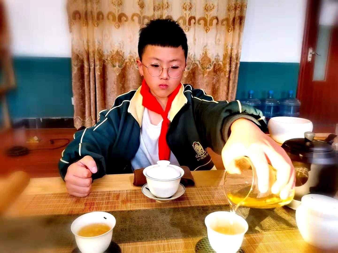 在课程中会给孩子们排练茶艺表演,茶艺表演的全过程,是一个表演者的语言、动作、神态、姿势、举止与茶、水、茶器、泡饮环境相协调的过程。通过茶艺的训练,培养并提高孩子的动手实践能力,学会“动止有方,虚静结合”,为他们今后的学习、生活拓展出一种悉心静气、仪态合度的能力。