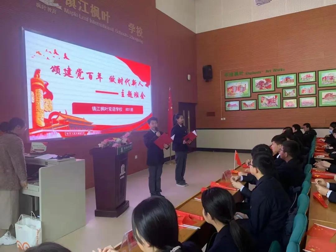 在热烈庆祝中国共产党成立100周年之际,为了弘扬中国文化建设,镇江枫叶双语学校八年级1班举行了“颂建党百年 做时代新人”的主题班会,旨在向我们伟大的党献上我们诚挚的祝福!