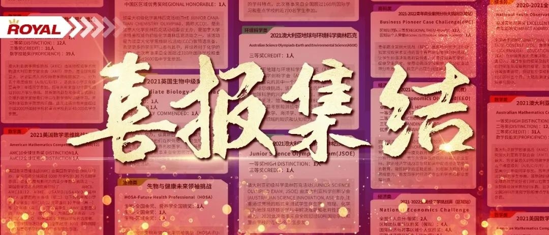 今日农历腊月二十三适逢北方小年在这个充满喜庆、欢笑与祝福的日子里王府学子也圆满递交了一年的答卷——全年斩获17项含金量爆棚的国际竞赛大奖覆盖经济、数学、物理、化学、生物、科学、环境科学、商科和综合9大学科获奖学子达170余人这一年,我们没有错过播种与收获这一年,我们不曾辜负