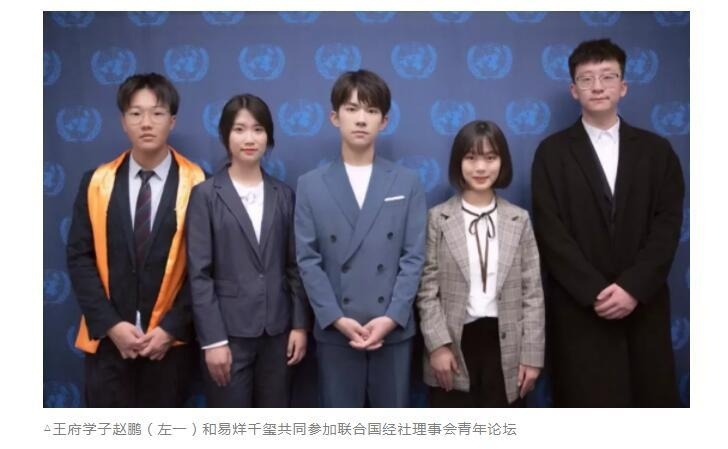 李硕还记得,在入学初总校长就在开学典礼上提到,王府要培养国际复合型人才,既要有学术能力,又需要有对国际事务的领悟能力,同时还需要具备一门以上的语言能力。这些优秀的人才,不仅要在境外成才,更要把所学带回中国,帮助中国的发展。 所以毕业后,李硕参与到了联合国妇女署的工作,并在北京王府学校开展了一系列活动,带领学弟学妹们,在学习和生活中,支持性别平等,打破性别偏见,反对性别暴力。 受到他的感召,后来的王府学弟、17岁的赵鹏,在2019年4月作为中国的青年代表站在了联合国的讲台,围绕“赋权、包容和平等”的议题,深入探讨青年一代在推动实施“2030可持续发展议程”的奋斗目标,当年和他同台的还有易烊千玺。